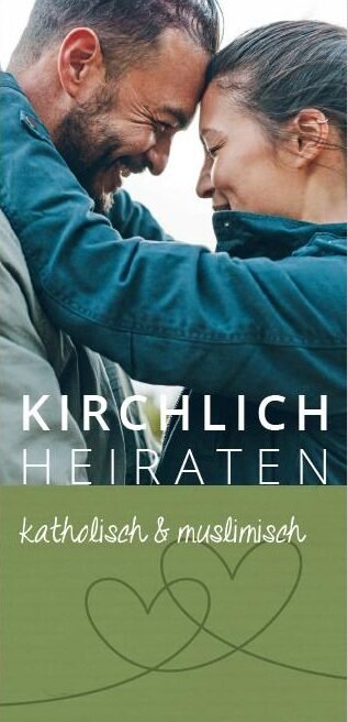 Der Flyer informiert über Fragen, die sich rund um eine Trauung ergeben, wenn ein Partner katholisch und der andere muslimisch ist. Hg: AKF Bonn, 2023