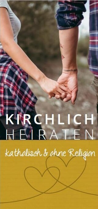 Der Flyer informiert über Fragen, die sich rund um eine Trauung ergeben, wenn ein Partner katholisch ist und der andere keiner Religion angehört. Hg: AKF Bonn, 2022