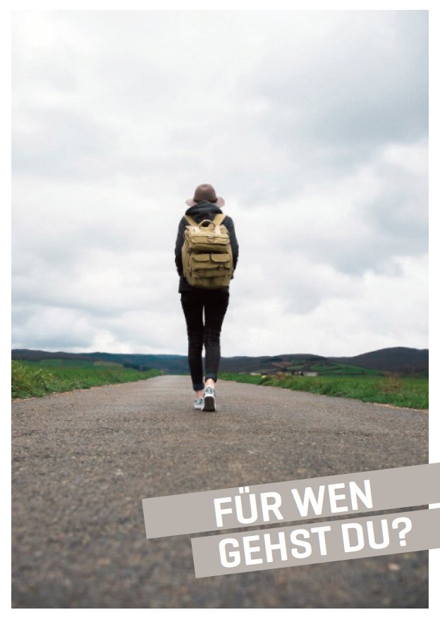Das Kartenset mit 5 verschiedenen Postkarten laden dazu ein, beim Pilgern im Gebet und in Gedanken eine Person "mitzunehmen". Dies kann jemand sein, der besonders unter der aktuellen Situation leidet, jemand der krank ist oder einfach jemand, dem es gut tut, wenn man an ihn denkt und für ihn betet. „Für wen gehst Du?“ heißt seinen persönlichen Weg mit anderen im Gebet zu teilen und gerade so Gemeinschaft möglich zu machen.