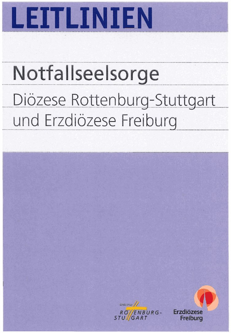 Die Leitlinien Notfallseelsorge der Diözese Rottenburg-Stuttgart und der Erzdiözese Freiburg sind ein Zusammenschau aller Richtlinien im Bereich der Notfallseelsorge. Ziel ist dabei, die Notfallseelsorge in den Stadt- und Landkreisen auf dem Gebiet der beiden (Erz-)Diözesen zu verankern, zu stärken und weiter zu professionalisieren. Die Leitlinien Notfallseelsorge dienen dazu, die Notfallseelsorge (PSNV) voranzubringen und die Beteiligten bei dieser Aufgabe zu unterstützen. Dazu greifen die Leitlinien Notfalleelsorge die bisherigen Erfahrungen in der Notfallseelsorge auf.