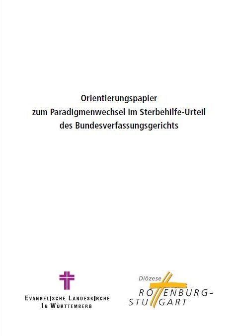 Orientierungspapier zum Paradigmenwechsel im Sterbehilfe-Urteil des Bundesverfassungsgerichts vom26. Februar 2020. Das Papier behandelt die Fragen: Worum geht es dem Urteil genau und welche Argumente leiten es? Wie ist es vor dem Hintergrund bisheriger Reflexionsgänge in der Ethik zu verorten? Wie sind die grundlegenden Argumente des Urteils aus der Sicht theologischer Ethik zu beurteilen? Hg.: Evangelische Lnadeskirche, Dez. 1 Theologie und weltweite Kirche und Diözese Rottenburg-Stuttgart, HA VII – Glaubensfragen und Ökumene. Rottenburg/Stuttgart 2020, 20 Seiten, Din A 4.